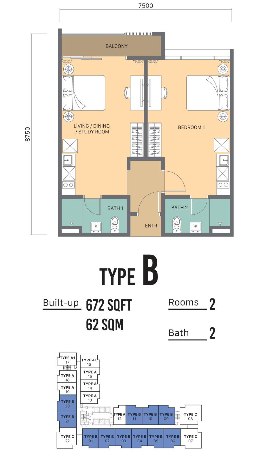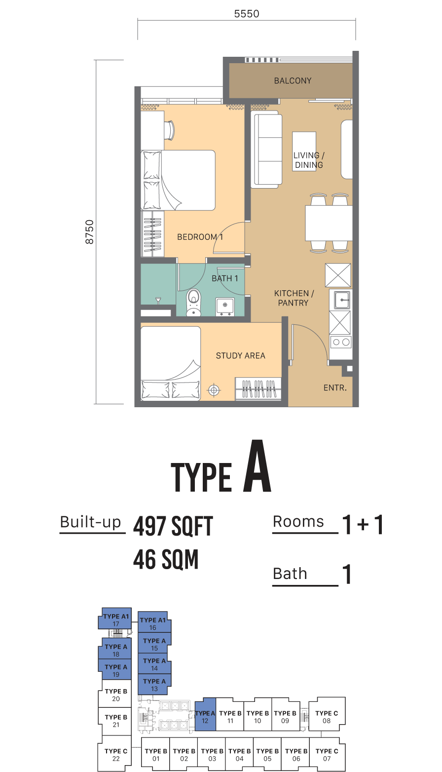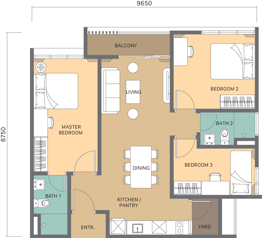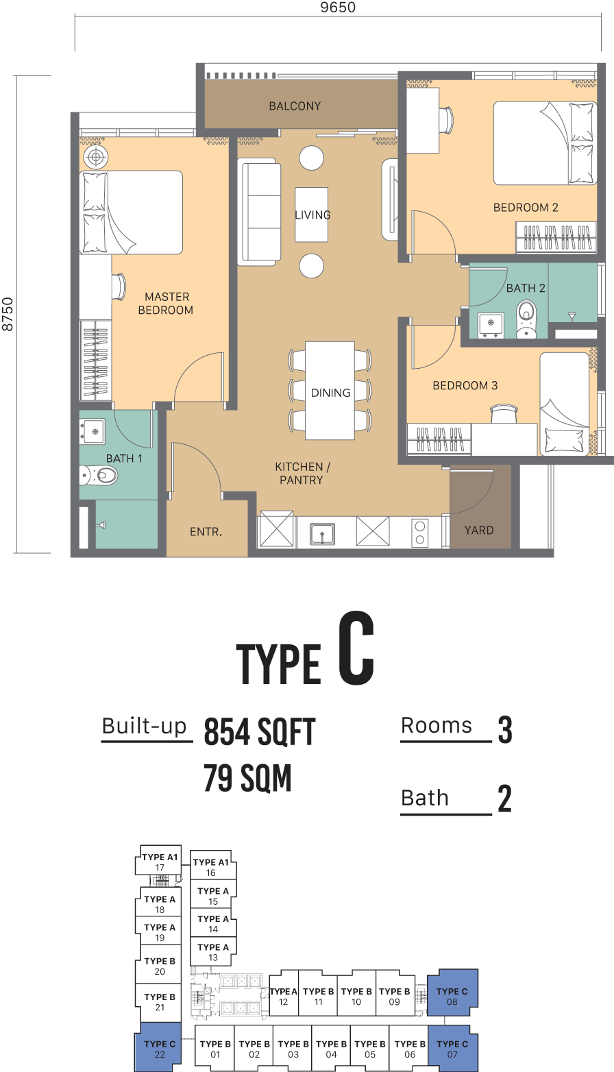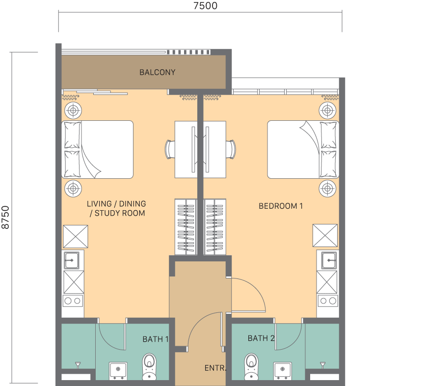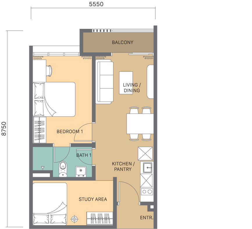 Disclaimer: All information contained herein including any sketches, illustrations, renderings, images, pictures, amenities, food services, resort services, unit finishes, designs, materials, plans, specifications, art and/or visuals shown and featured in this brochure including the interior design concepts, colour schemes and suggested furnishings in the completed unit/ development are artist’s impression and for illustrative purposes only and shall not be taken as a representation, expressed and implied, of the final details of the exterior or interior of the actual development or a unit that is to be or is being purchased by the purchaser or of the items that will be delivered with the purchaser’s unit/ the development. This cannot form part of an offer or contract. All measurements are approximate. The design and construction of the development is subject to first obtaining the appropriate authority’s approval(s) which may require the developer to alter any design, plan, or layout depicted. Accordingly, the developer expressly reserves the right to modify, revise, or withdraw any or all of the same without any liability being incurred by the developer. In the event of any discrepancy between the Sale and Purchase Agreement and the information, perspectives and plans contained in this brochure, the terms of Sale and Purchase Agreement which form the entire agreement between the purchaser and the developer shall prevail. All arrange-ments, modifications, planning, and designing are the responsibility of the owner. All associated costs and expenses in implementing these design changes are to be borne by the owner. Terms & Conditions Apply.